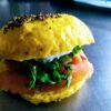 - 15 Bagel de berenjenas, zuchinis y zanahorias asadas y queso Finlandia con ciboulette.