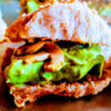 - 15 Pan de salvado y avena relleno hongos asados guacamole y kale.