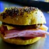 - 10 Bagel, de lomito braseado, queso pategras, tomate y un toque de mostaza caramelizada.
